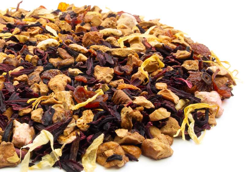 - Apple pieces, Hibiscus petals, Rosehips, Orange pieces, Calendula petals, Natural flavors