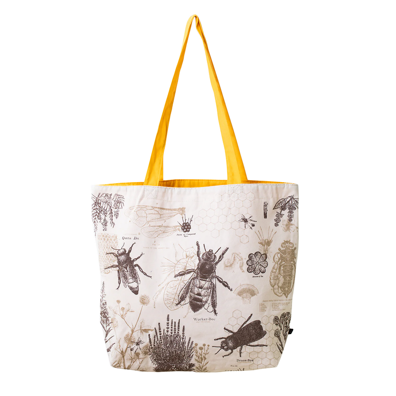 This sturdy canvas tote bag is reversible with solid color and a zipper pocket on one side, or you can flip it around and wear it with the honey bee design on the outside for all the world to see.