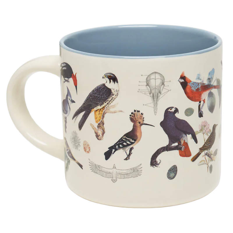 Calling all bird-nerds! This Birdwatching mug is a hoot and a half! Featuring full-color illustrations of a variety of our favorite feathered friends and a coordinated blue sage pop-color inside, this mug is perfect for slowly sipping your favorite hot beverage while making notes of the birds you see at the feeder.