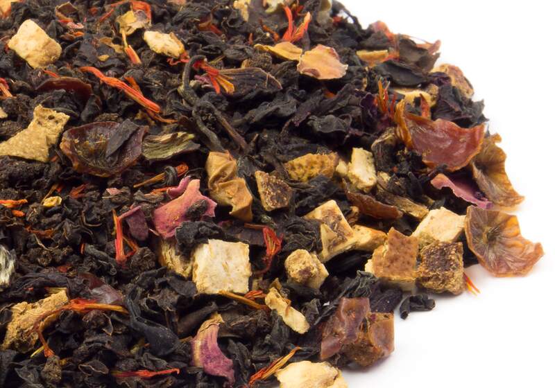 Having had Blood Oranges in the past that were so sour, they could knock your socks off, I was hesitant to try the Blood Orange Black tea, but orange flavor is one of my favorite flavorings in tea, so I decided to give it a try and I am so glad I did! The orange flavor in this tea isn't sour at all and is rather delicate with a bit of sweetness. The orange peel is slightly spicy and the rose petals and apple pieces round out the flavor profile nicely. I drink orange flavored teas frequently, and this tea has become one of my go-to teas in the citrus realm. Delicious!