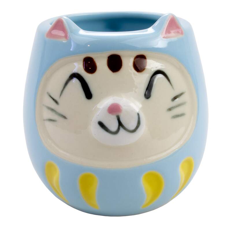 In the guise of a cat daruma (a lucky charm that watches over you to make sure that the wishes you ask for come true), this mug hopes to continue your good health and prosperity through liquid form.