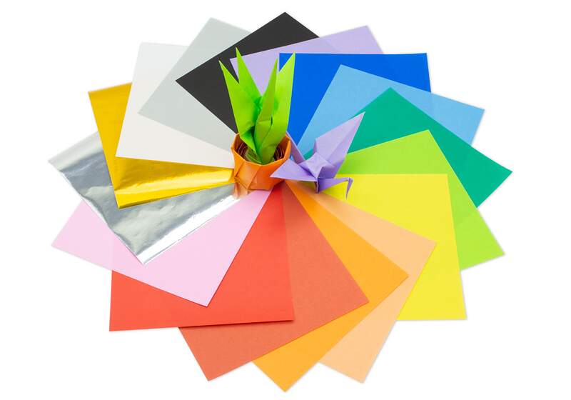 Origami 70 paper pack of 16 solid colors, 4-6 pages of most colors. Paper measures 15 cm x 15 cm (6" x 6").