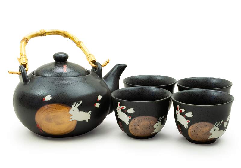 This tea set comes with four cups.