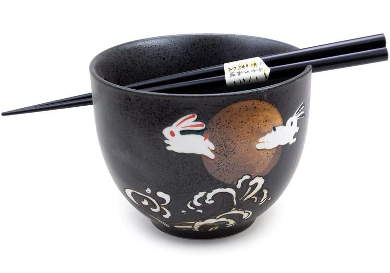 5"Dx3.75"H Bowl with chopstick holder and chopsticks.