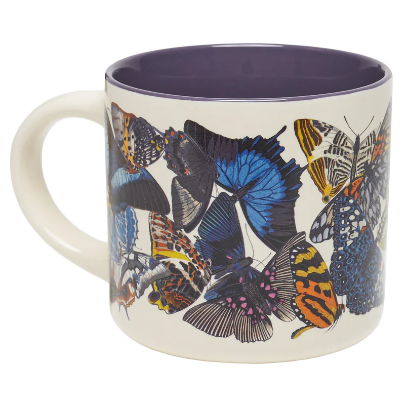 This Butterflies ceramic mug features full-color illustrations of some of the most beautiful members of the entomological world, with a violet pop-color inside. Whether you're enjoying your morning coffee or afternoon tea, this mug is the perfect addition to your collection.