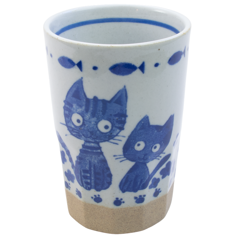 Cute cat cup alert! The sweetness of these little striped blue cats is just compounded with fish across the top and paw prints along the bottom. It is just so happy and smile inducing. Great start to the morning or any time of day.