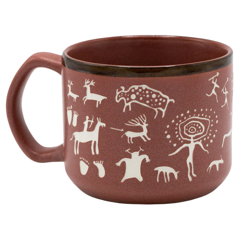 Journey back in time while you sip your favorite brew. This ruddy clay-colored mug features a collection of cave paintings from across the world that's been sand-carved by hand into the surface of the mug for a unique tactile feel. Each piece is made with care by skilled artisans, so you can let your love for science and art shine through with every sip.