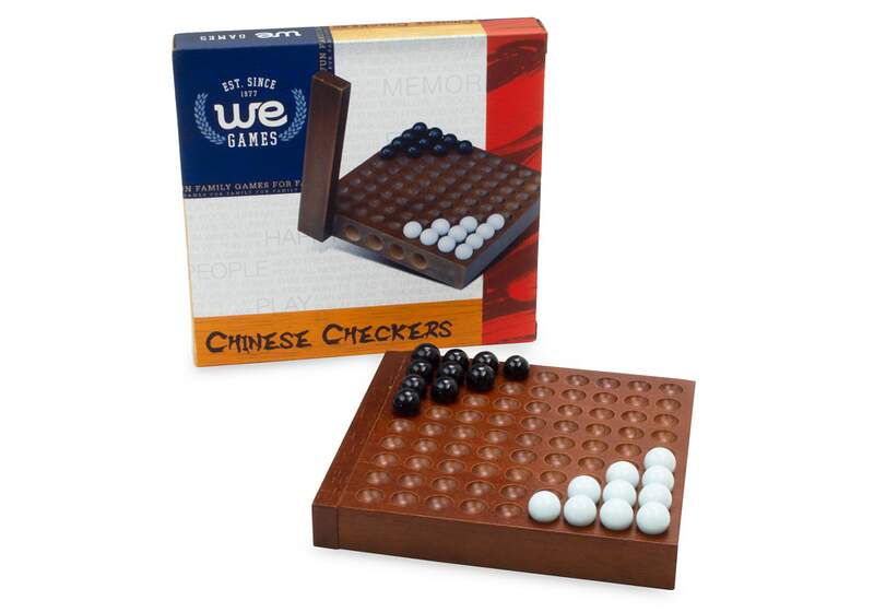 This is a mini version of the beloved game of Chinese Checkers! Handsome enough to be left out on a side table for your guests to play, small enough to be convenient for travel. Makes a great gift, stocking stuffer, or house warming gesture. Includes marbles for two players. The wooden side arm slides upwards, and the marbles store inside of the game board. A magnet keeps the board closed when not in use.