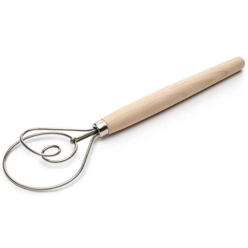 This traditional Danish Dough Whisk features a unique coiled stainless steel wire design and a comfortable wooden handle for easy gripping. Perfect for blending, mixing, and combining of wet and dry ingredients, and a must-have for thicker, heavier dough. The dough won't clump and get caught in between the wires, allowing easier use and easier cleaning!