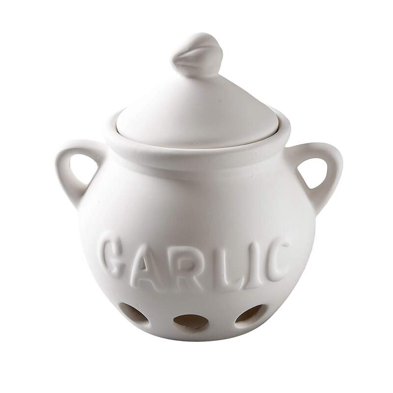 Keep your garlic safe and organized with this classy ceramic garlic keeper. Nonporous unglazed stoneware includes vent holes to promote proper airflow, in order to better preserve garlic and keep it cool and dry.
