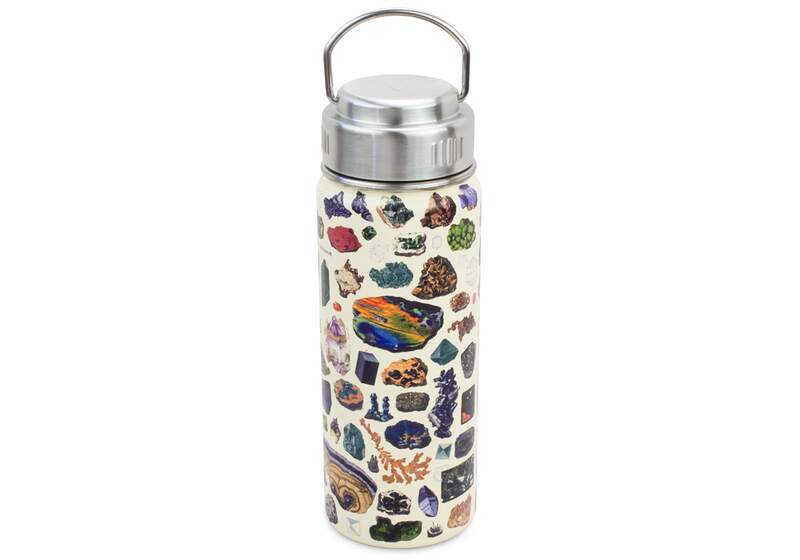Let this Double-walled flask accompany you on your next rock hunting adventure, take it to a geology lecture, or park it on your desk to brighten up your work-from-home workspace. This Gems & Minerals Vacuum Flask is perfect for your favorite rock hound, jeweler, mineralogist, or natural history museum buff. Geology rocks!