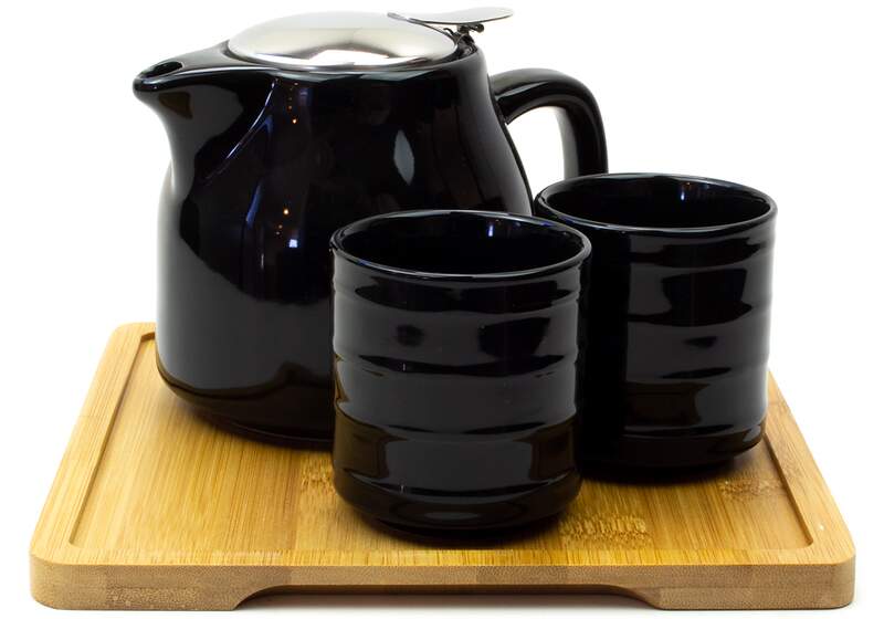 The Harmony Tea Pot Set brings together tradition and modernity. Each set comes with a teapot with an infuser, two 5-ounce cups, and a bamboo tray. The pot holds up to 20 fluid ounces and the cups hold 5oz.