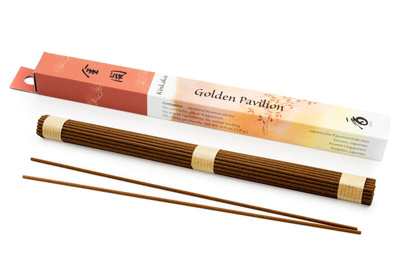 Natural incense pack of 35 sticks. Golden Pavilion: This recipe containing sandalwood, patchouli and cinnamon was inspired by the spectacular Kinkaku-ji temple's reflection in Kyoko-chi pond.