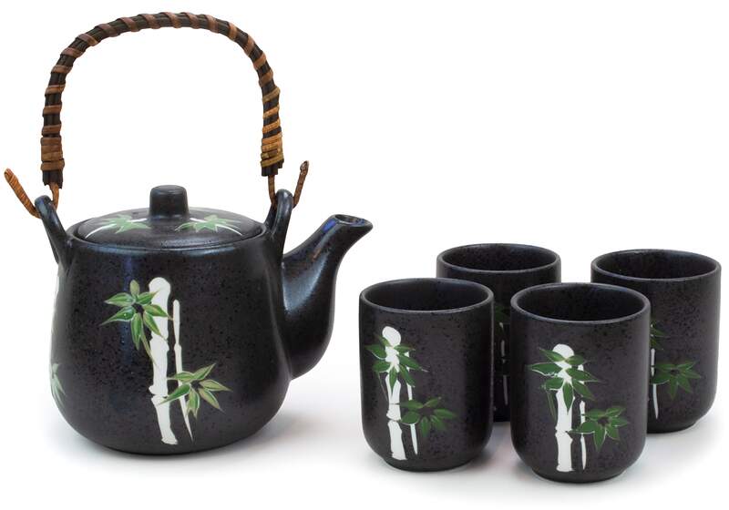 This tea set comes with four cups and mesh infuser.
