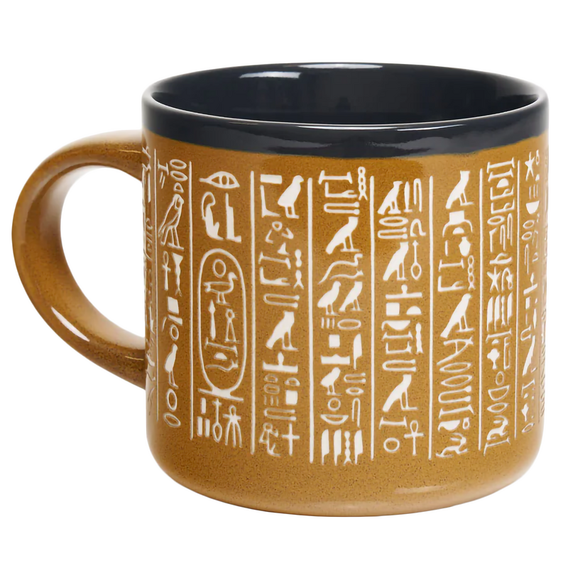 Meditate on ancient civilizations and early writing systems with this elegant, sand-colored Hieroglyphics mug.
