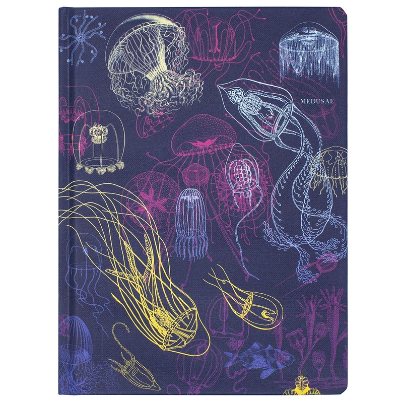 Muse on the mesmerizing undulations of jellyfish, or draw up your plans for an epic beach cleanup in this electric blue, yellow and purple notebook.