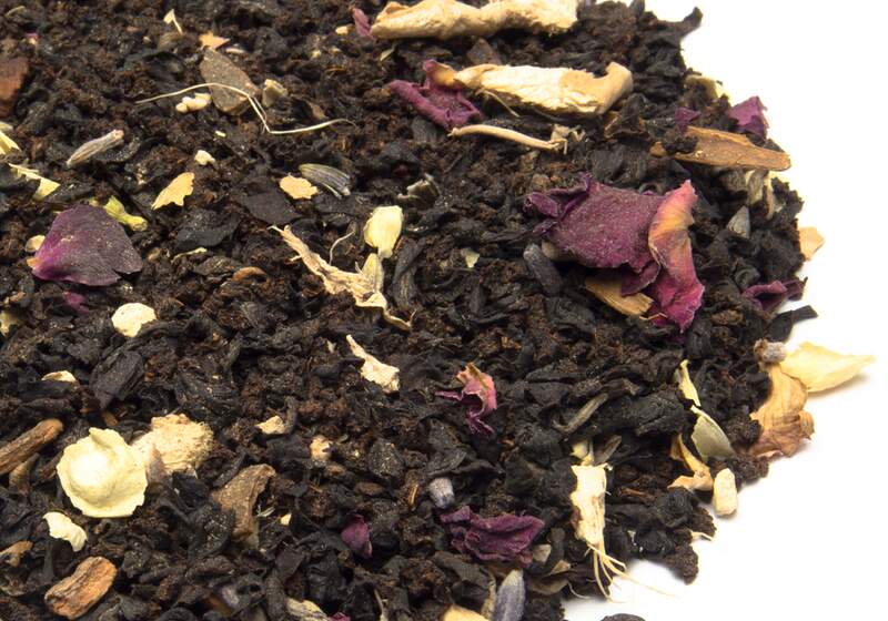 - Black tea, ginger, coriander, cardamom, cinnamon, cloves, pepper, rose petals, jasmine, lavender