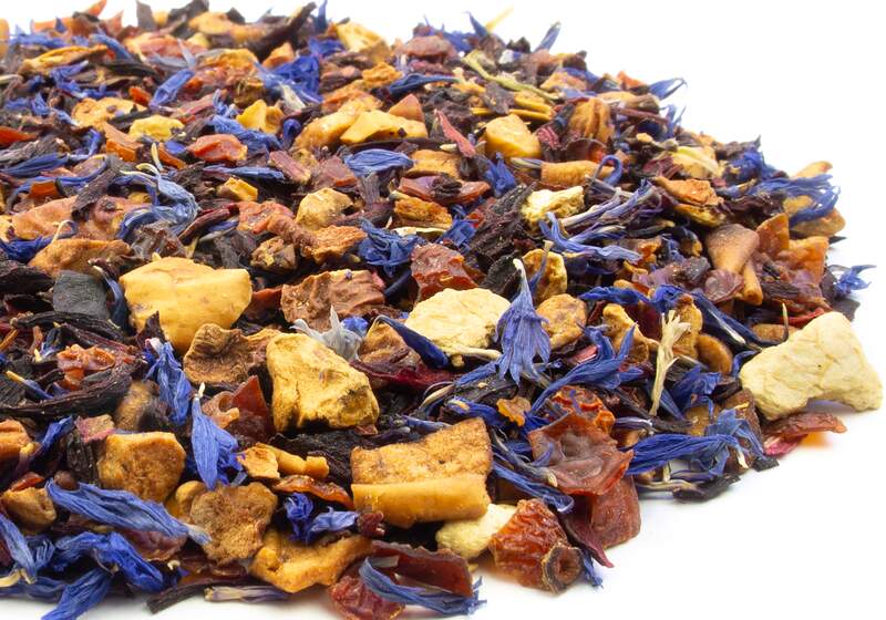 - Apple, Hibiscus, Rosehip, Orange pieces, Cornflower petals, Natural flavors