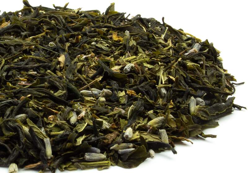 This tea is a unique blend of green tea, lavender and peppermint herbs, particularly because lavender is actually the main aroma and flavor of the tea. In most cases, peppermint tends to dominate a blend; in this tea, the peppermint actually enhances the flavor of the lavender, while lingering only in the background as a subtle hint and aftertaste. If ever there was a good bedtime green tea, this blend would be it. (Though green teas before bed are only recommended for those who have cultivated an immunity to caffeine!)