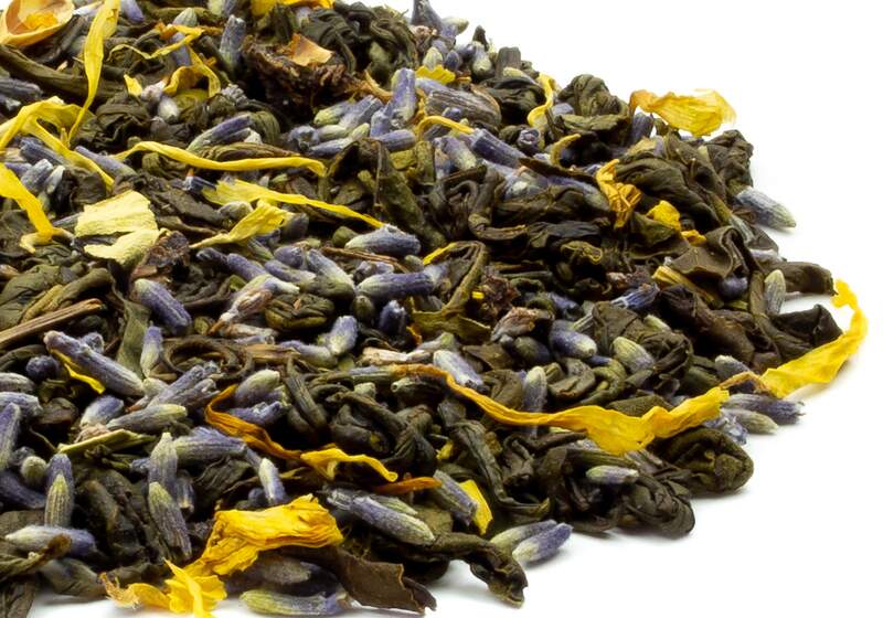 - Gunpowder green tea, lavender, lemon peel, calendula petals, and natural lemon flavor.