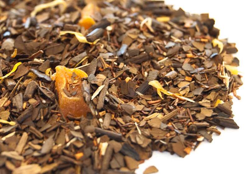 - Roasted Mate, Rooibos, Calendula, Mango Pieces, and Ginseng Root, with Natural and Artificial Flavoring