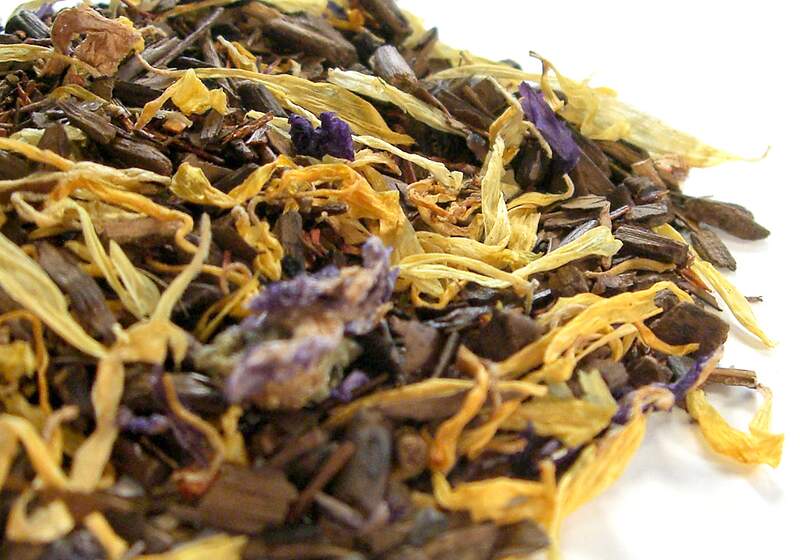 - Mate, Rooibos, Coffee, Calendula Petals, and Cornflower Petals, with Natural and Artificial Flavoring