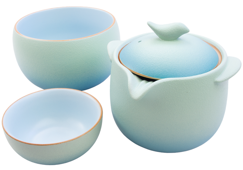 Gong fu cha literally translates as "right effort tea." The right tools allow for perfect brews, at home or on the go! This tea-for-one set includes a cup, a tea bowl, and a leaf-straining pot, all of which are contained in a convenient carrying case.
