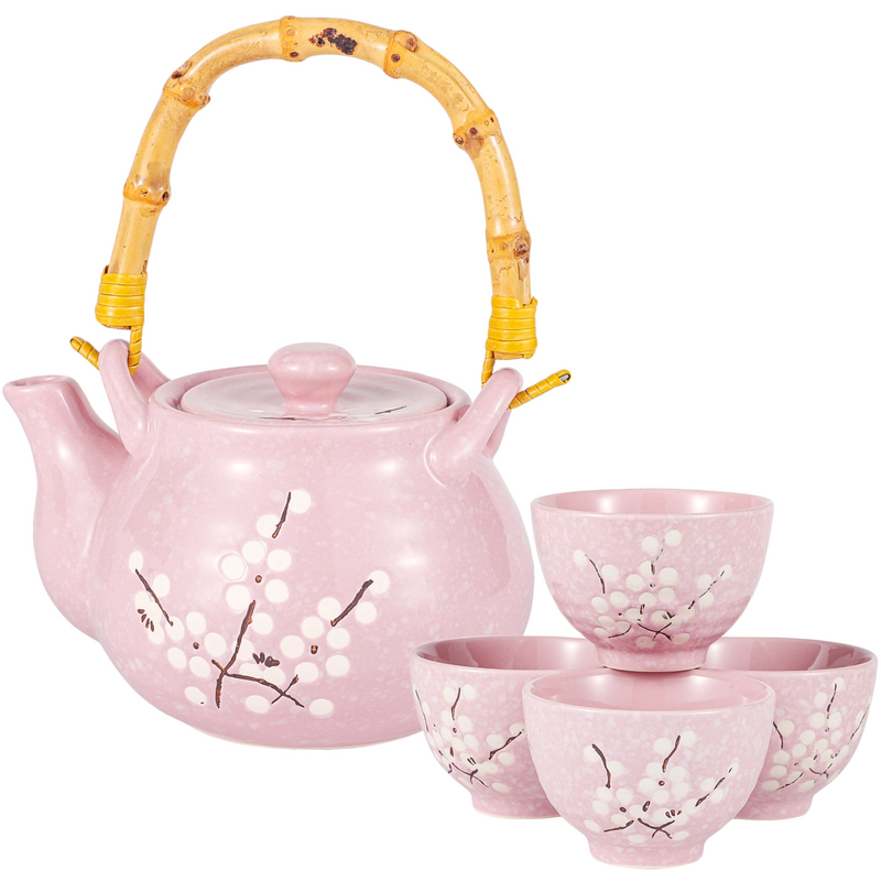 This tea set comes with four cups and mesh infuser.