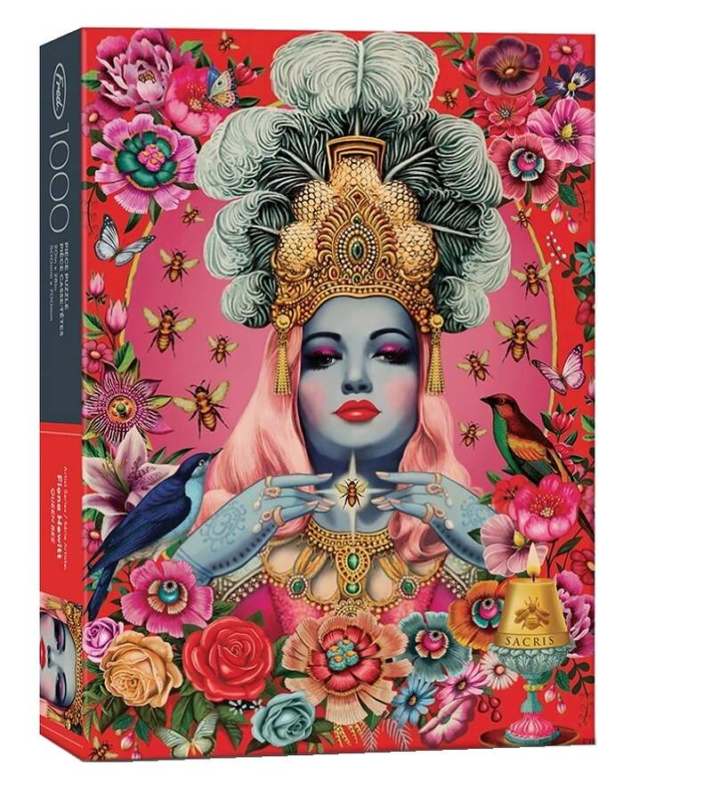 Queen Bee is enshrined in the highest quality 1000 piece puzzle. 2mm thick ribbon-cut puzzle is made of 90% recycled material and printed with soy-based inks with an anti-glare finish.