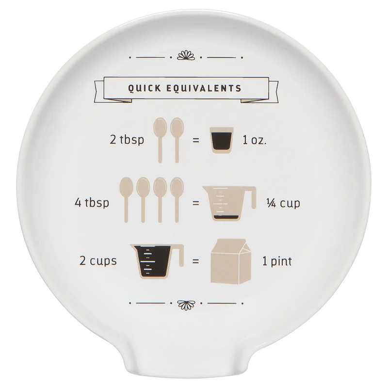 Blend style and functionality with these helpful kitchen conversions spoon rest by now designs. Printed with several basic measurement conversions, it adds a friendly touch of country charm to your counter or stovetop.