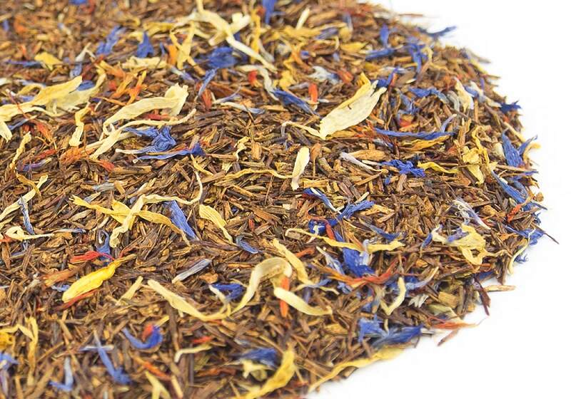 - Rooibos, red thistle, cornflower and calendula petals, almond extract, natural flavors