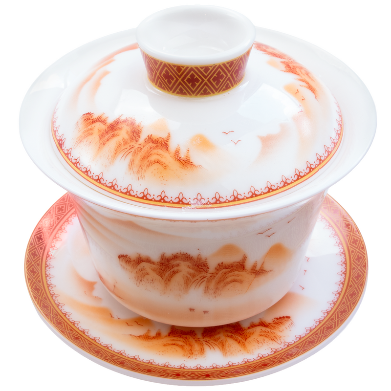 Gaiwans are a traditional Chinese lidded bowl, without handles, used for the infusion and consumption of tea, consisting of a bowl, a lid, and a saucer representing people, heaven and earth, respectively.