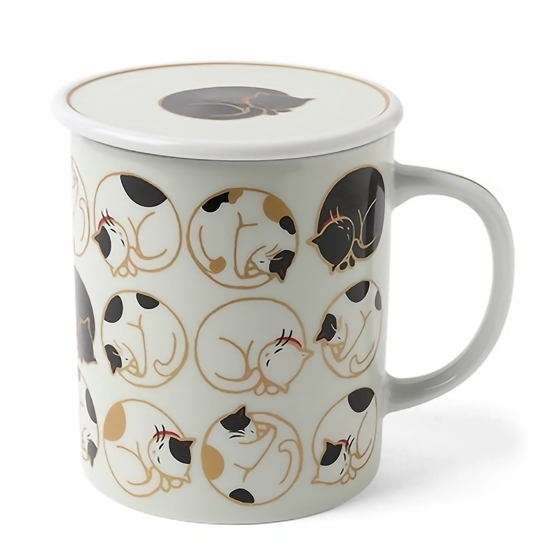 There is something very comforting about watching a sleepy curled up cat. The only thing that makes it perfect is to relax yourself and have a cup of tea! Matching lid included to keep your drink warm and clear of cat hair. Can also be used as a tea bag holder or a mini cookie plate.