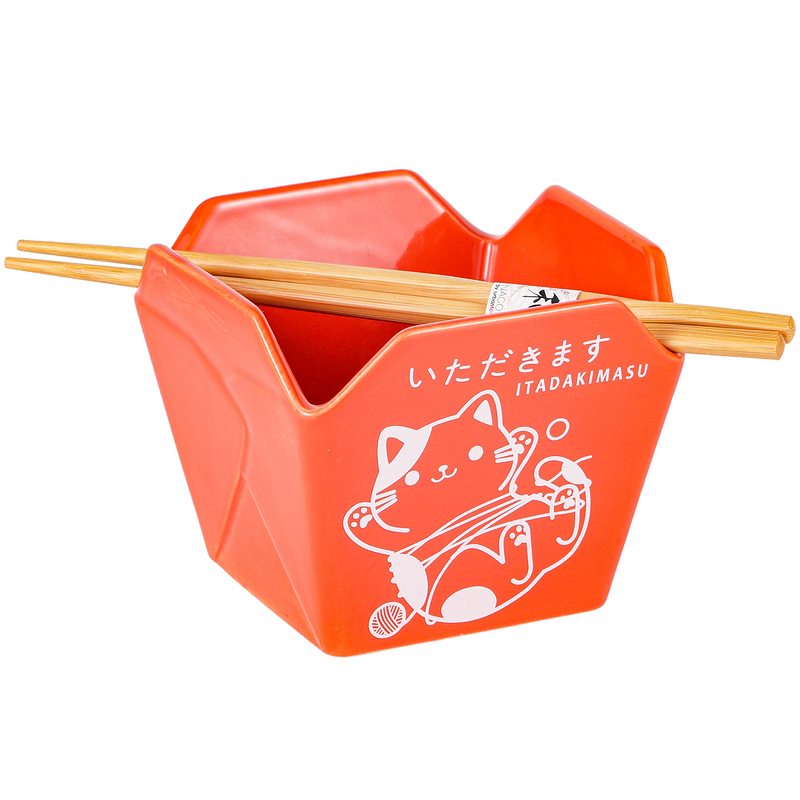 5.25"D x 3.75"H Bowl with chopstick holder and chopsticks.