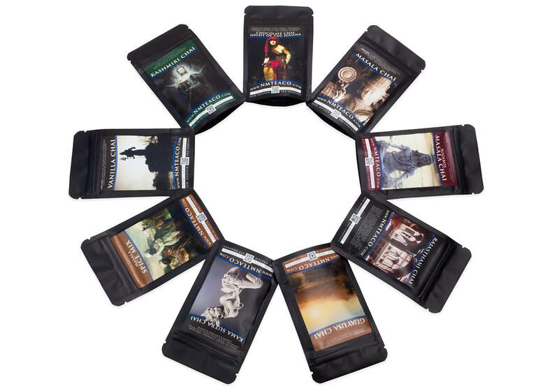 Sampler of our best chai teas. Includes four black chai tea varieties, two highly caffeinated chai teas (eg Roasted Mate Chai and Guayusa Chai) and two caffeine-free chai teas (eg Rooibos Masala Chai and Masala Spice Mix). The Masala Spice Mix is a blend of just the chai spices so that you may enjoy it on its own or with your favorite cup of tea to "Chai It Up!"
