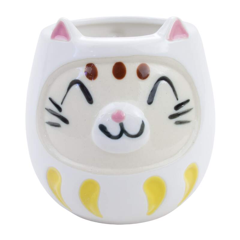 In the guise of a cat daruma (a lucky charm that watches over you to make sure that the wishes you ask for come true), this mug hopes to continue your good health and prosperity through liquid form.