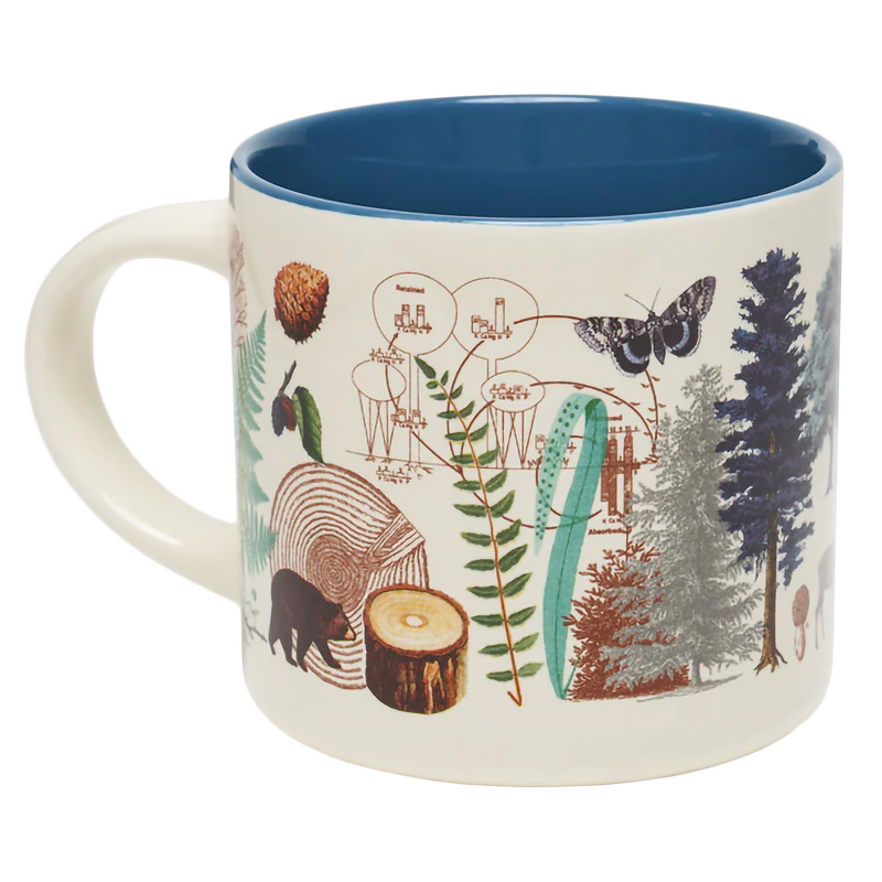 This Wilderness Wanderlust Mug features beautiful full-color vintage scientific illustrations of forest flora and fauna on the outside, with the perfect blue-spruce pop-color inside. Fill it with your favorite hot beverage and sip while you get ready for a day in the woods.